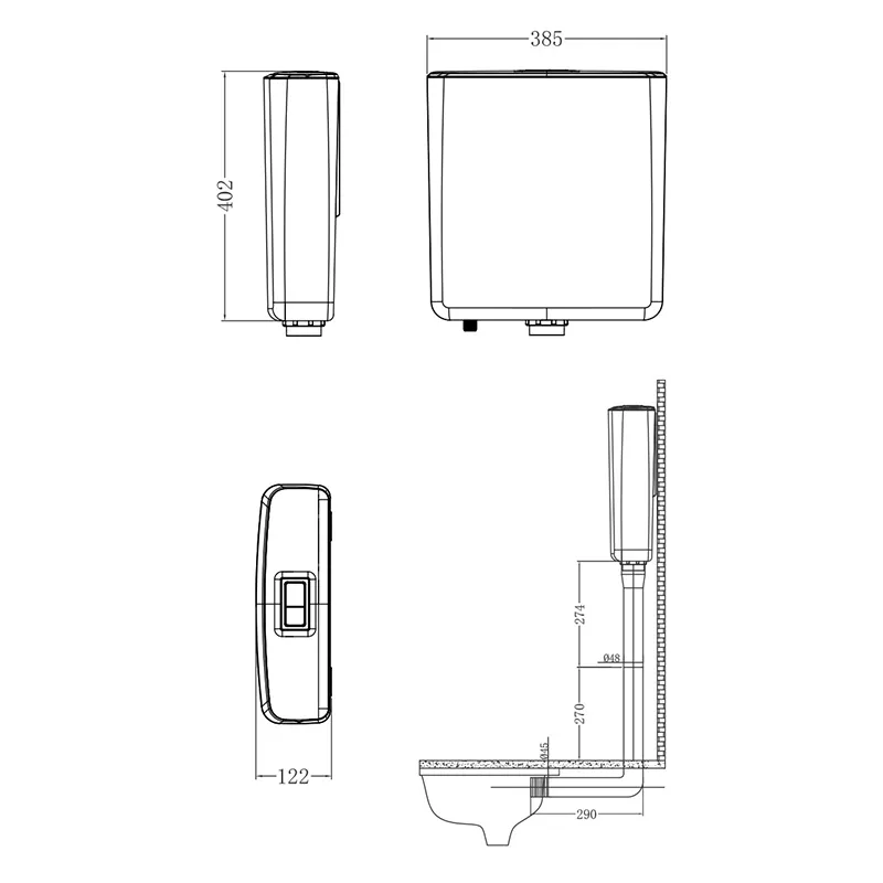 - Dimensions: 385×122×402mm