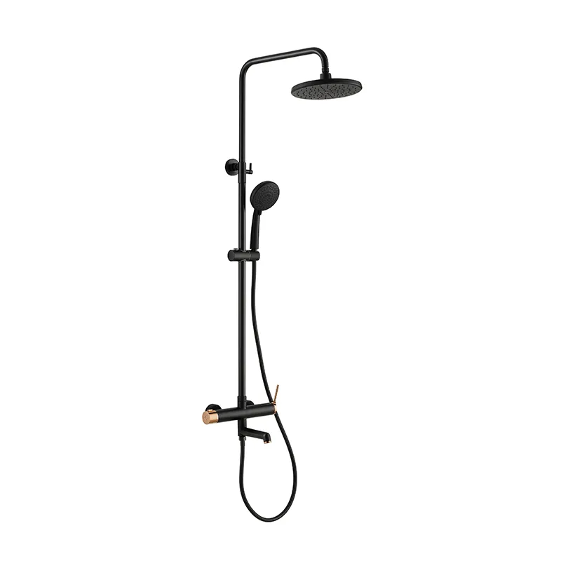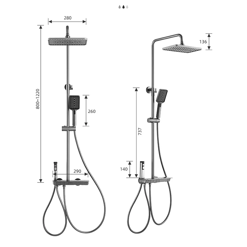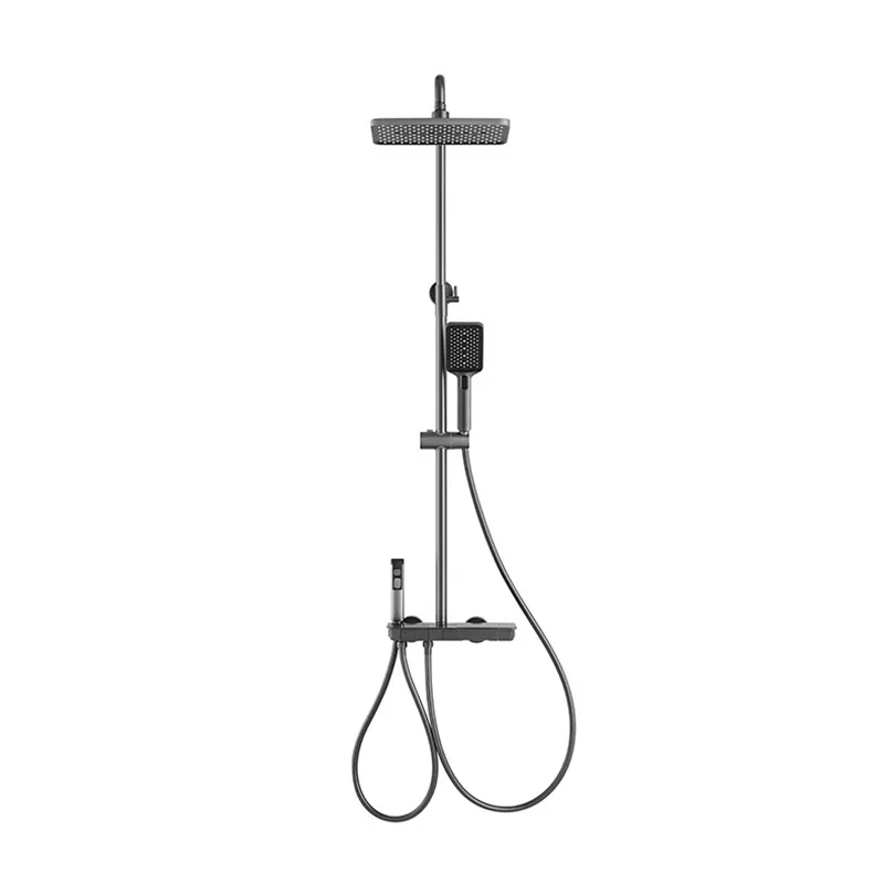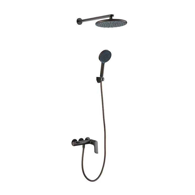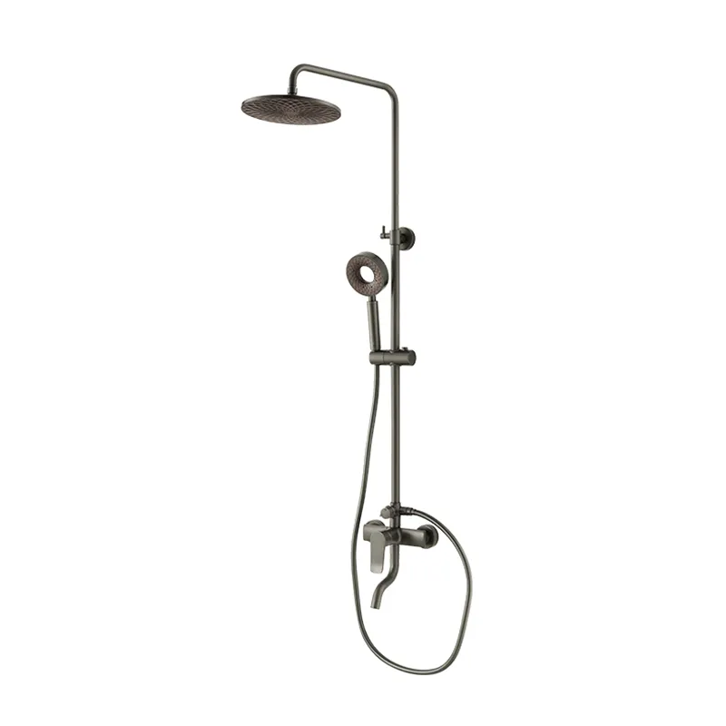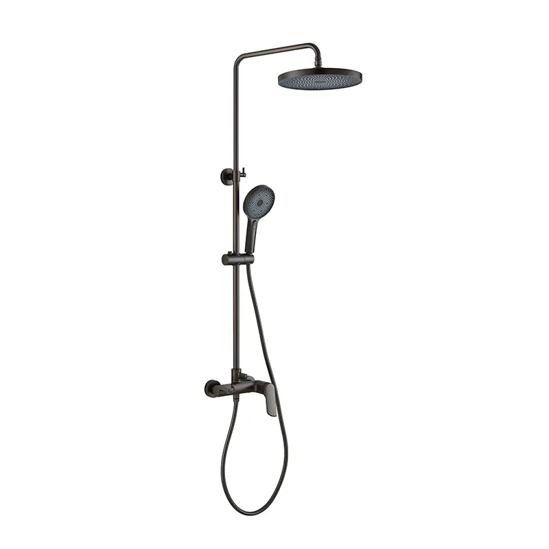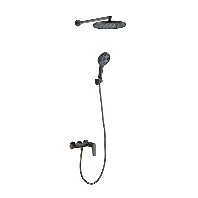 - Configuration: rainfall shower head + 3-function handheld shower head with spray gun