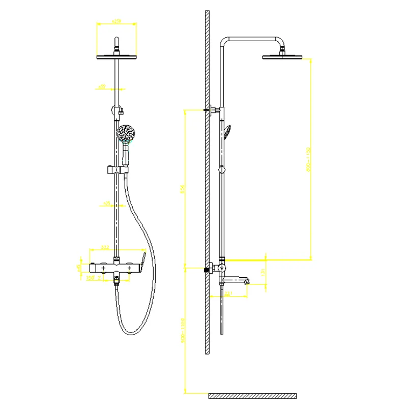 - Configuration: 9.3 inch rainfall shower head + 3-function ABS handheld shower head