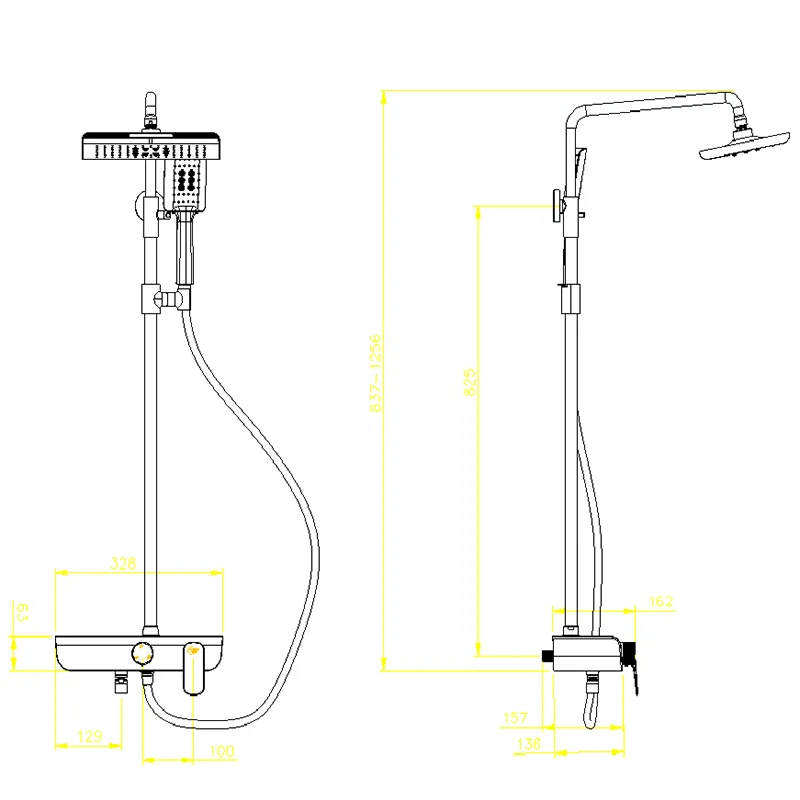 - Configuration: 11 inch square rainfall shower head + three-function square handheld shower head