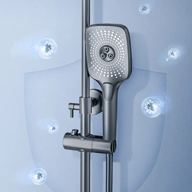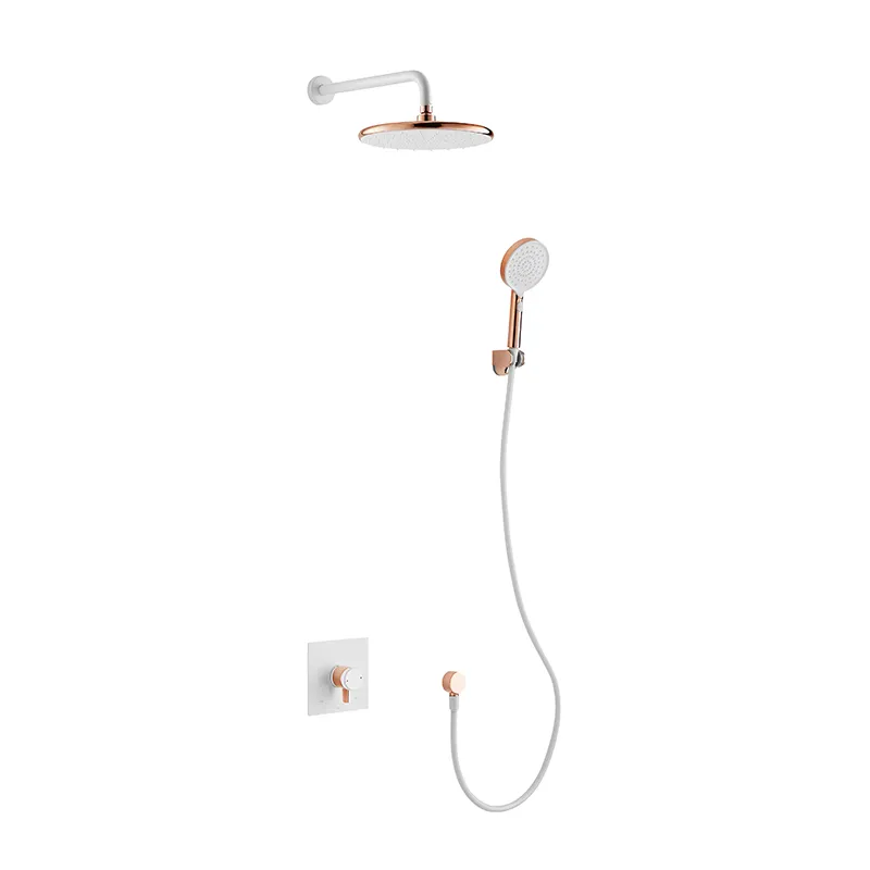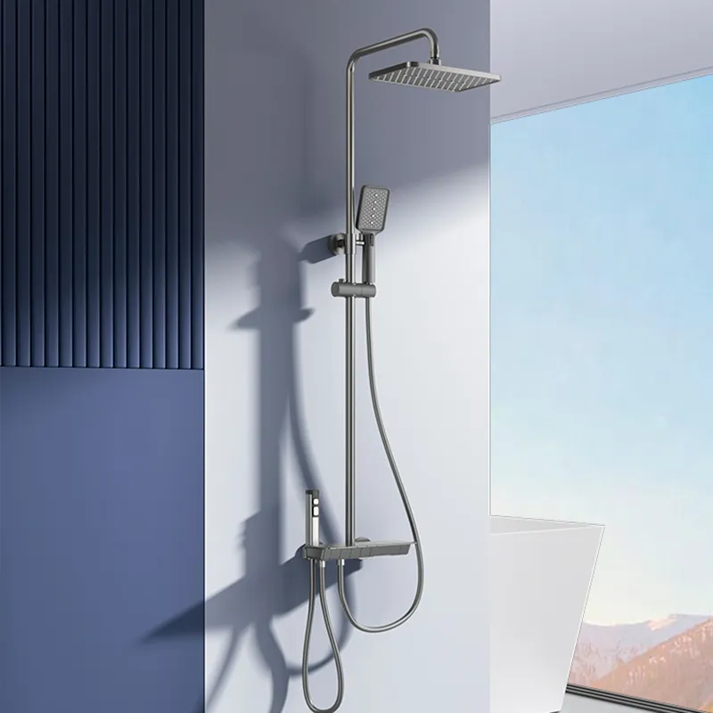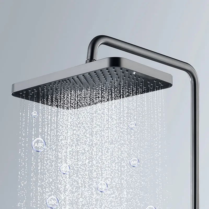 - Configuration: 10 inch square rainfall shower head + 3-function handheld shower head with spray gun