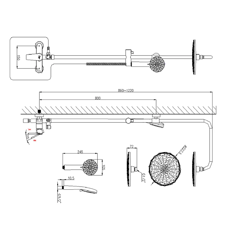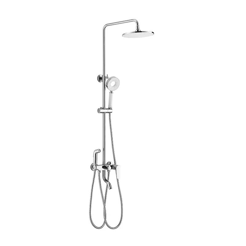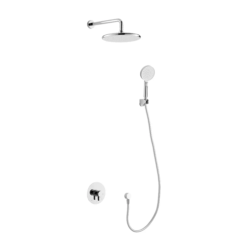 - Configuration: 10 inch round ABS rainfall shower head + 5-function handheld shower head