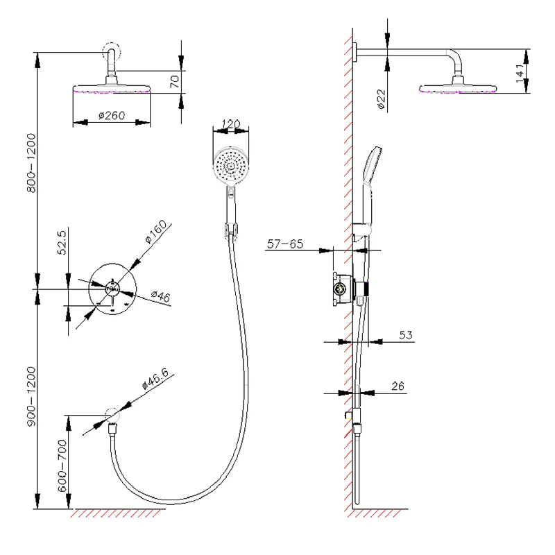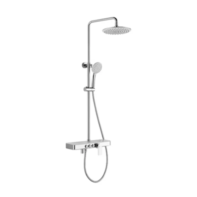 - Configuration: rainfall shower head + 5-function handheld shower head