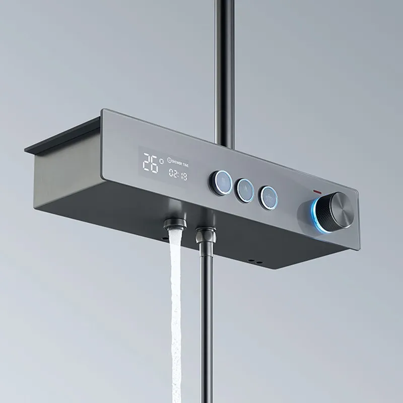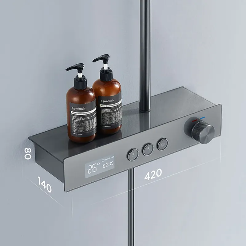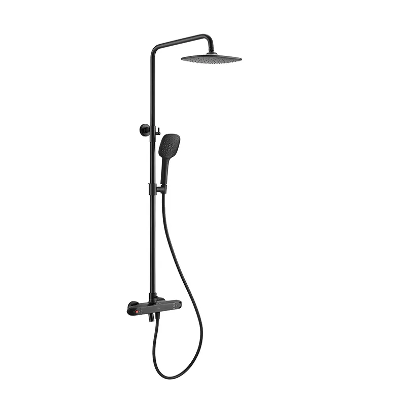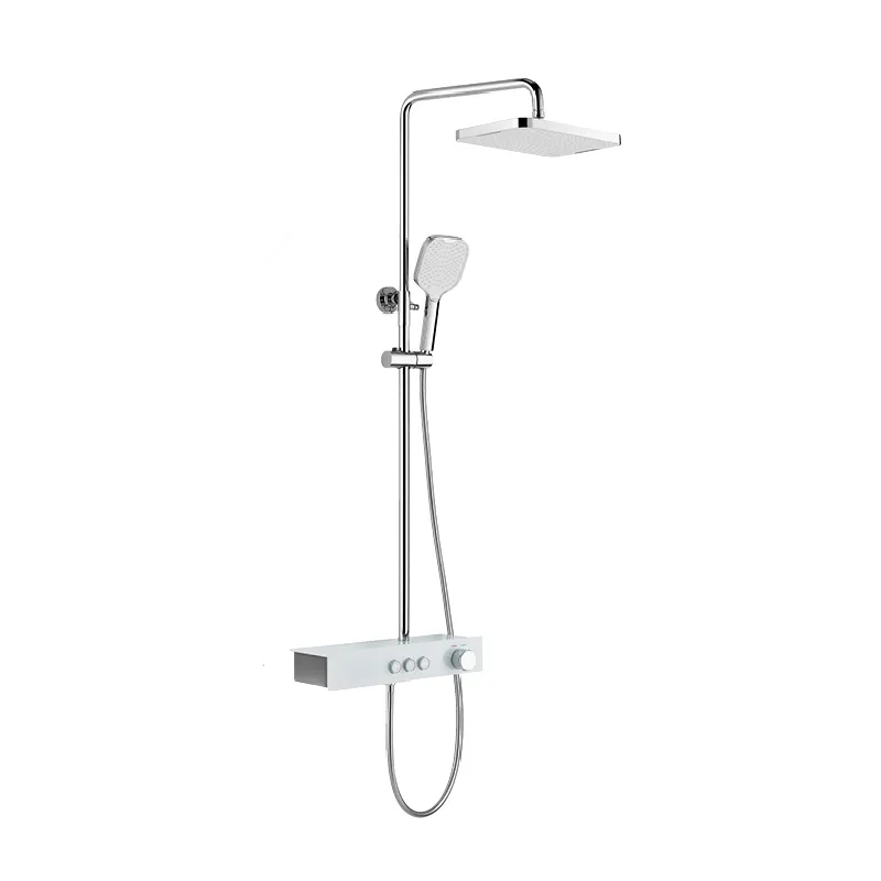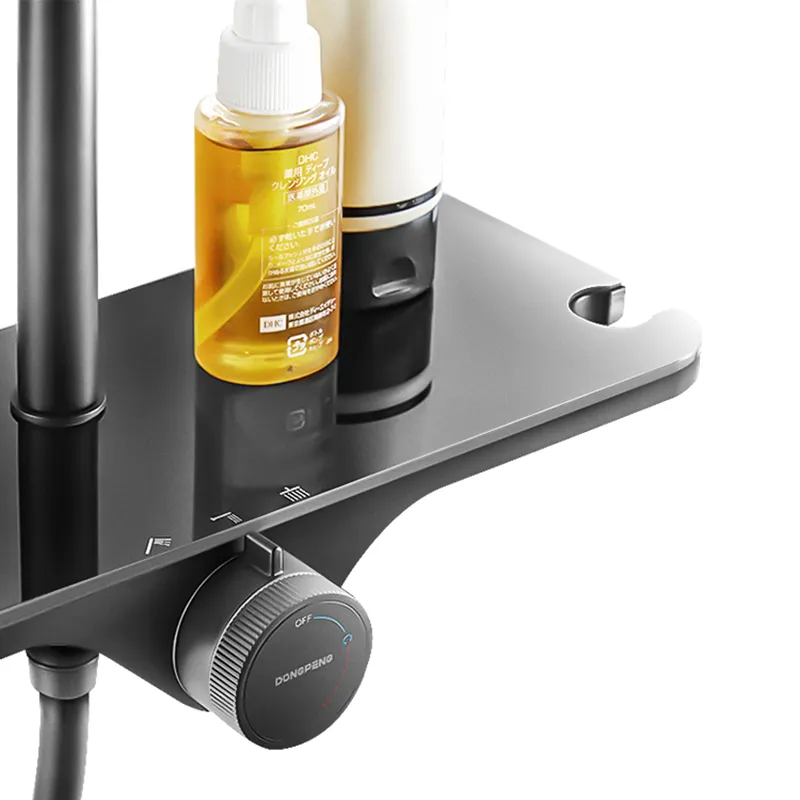- Configuration: 3-outlet knob + large glass storage rack + 254mm round rainfall shower head + pressure-assisted handheld shower head (suitable for low water pressure areas)