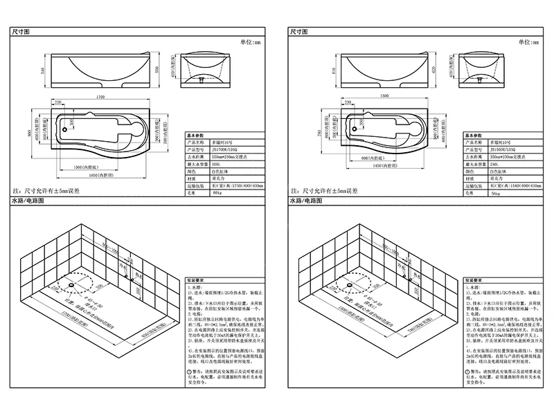 - Dimensions: 1500×750×390mm, 1700×750×390mm