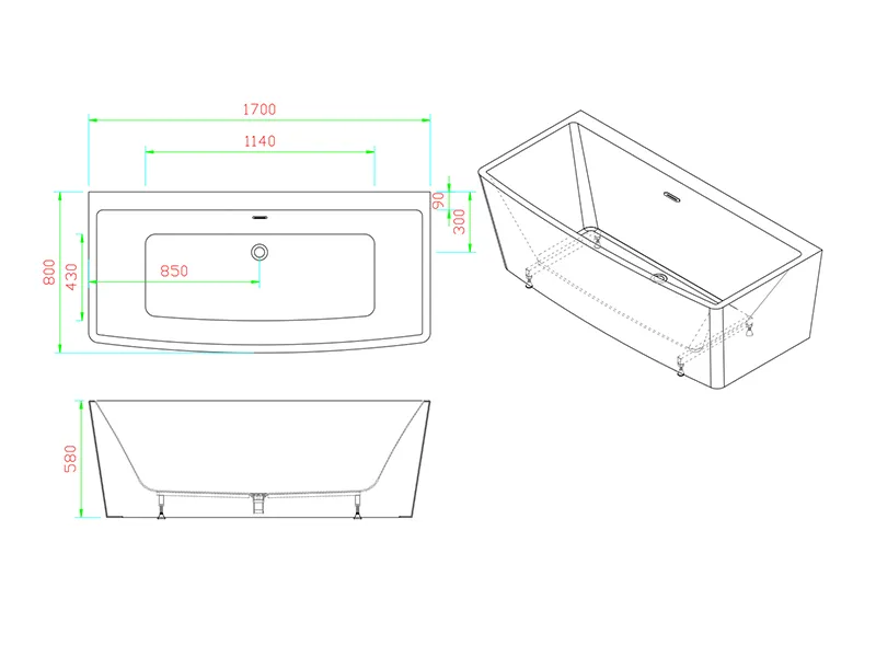 - Dimensions: 1700×800×580mm