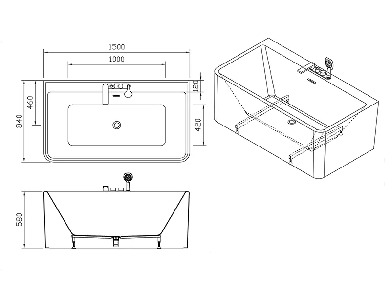 - Dimensions: 1500×840×580mm, 1600×840×580mm
