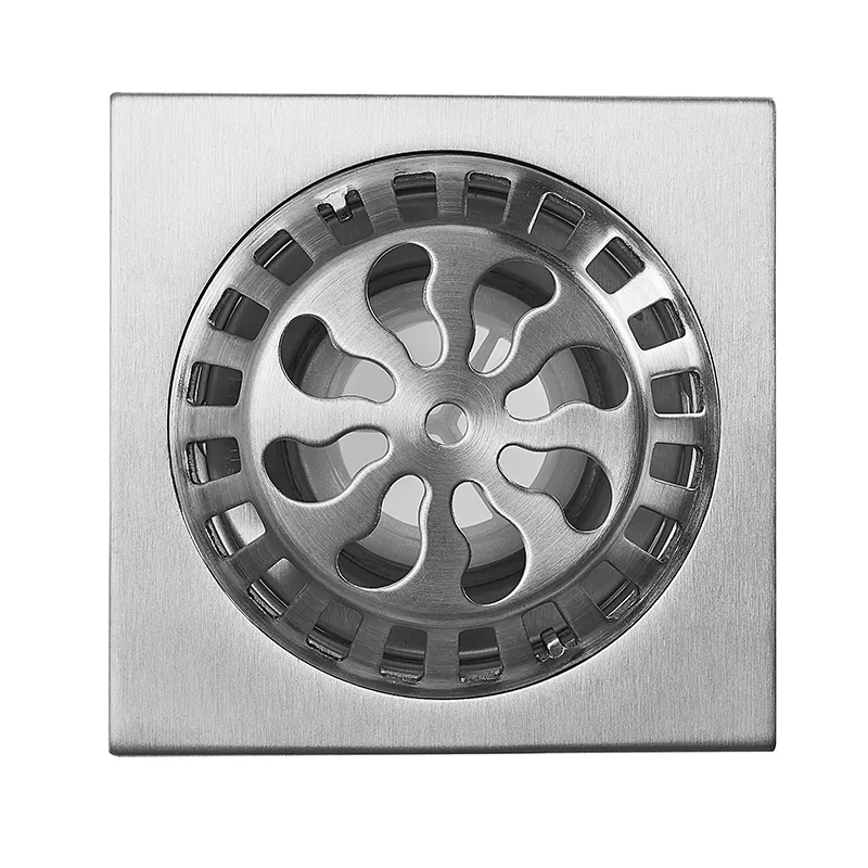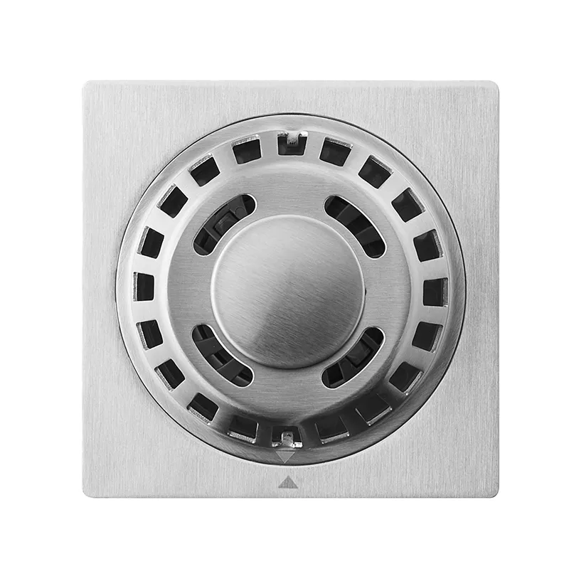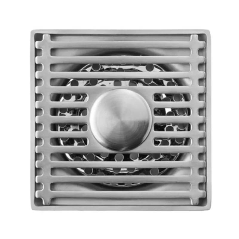 Brushed Stainless Steel Deodorant Floor Drain with Hair Catcher 100×100mm