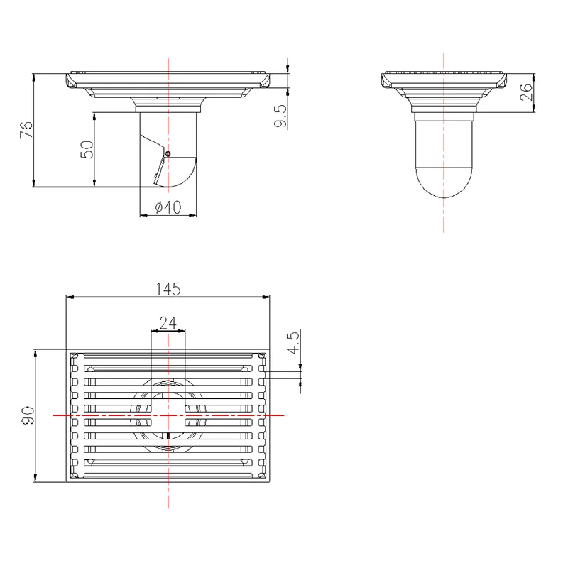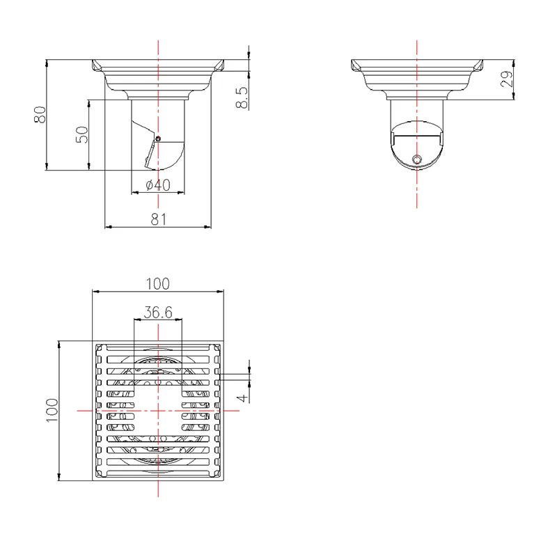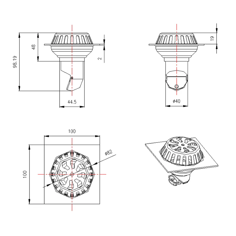 Chrome Plated Copper Deodorant Floor Drain 100×100mm
