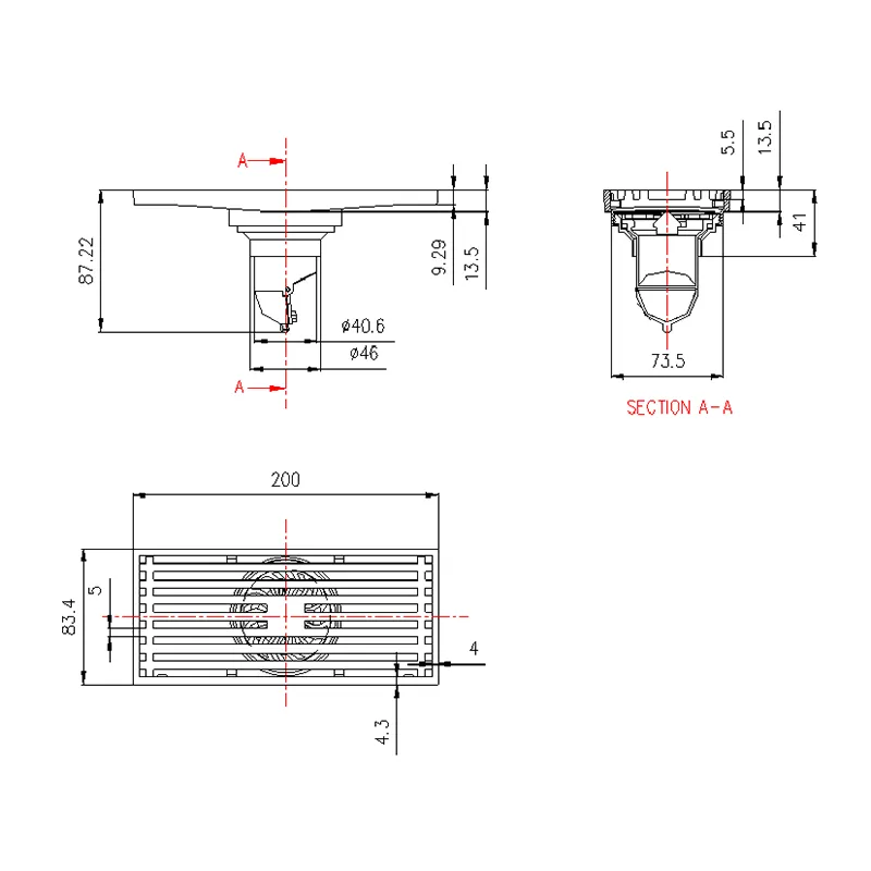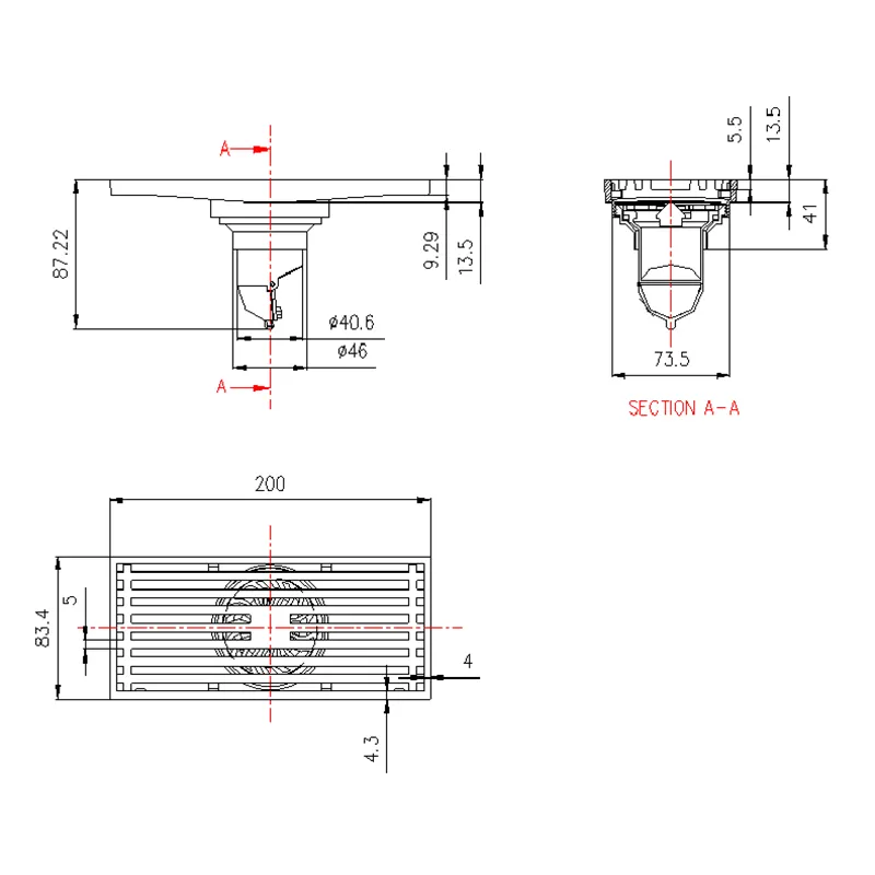 Chrome Plated Copper Deodorant Floor Drain with Double Filter 80×200m
