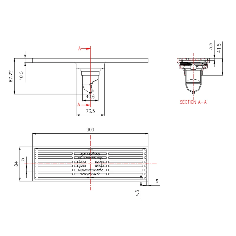 Chrome Plated Copper Deodorant Floor Drain with Double Filter 80×300mm