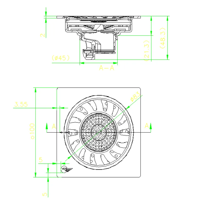 Brushed Stainless Steel Deodorant Floor Drain with Double Filter 100×100mm